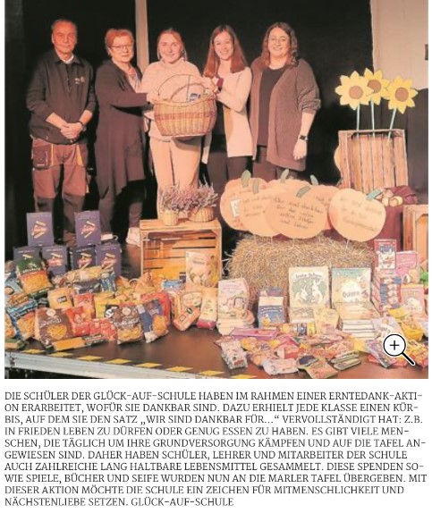 Am 21.10.2025 erschien ein Artikel über unsere Aktion zu Erntedank in der Marler Zeitung.